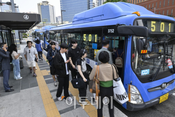 ▲서울 시내버스 노동조합의 파업 예고일 하루 전인 27일 서울 용산구 서울역버스환승센터 정류장에서 시민들이 버스에 탑승하기 위해 이동하고 있다. 이날 서울 시내버스 노사는 막판 자율교섭을 진행한다. 협의가 불발되면 서울 시내버스 노조는 28일 첫차부터 파업에 돌입한다. 조현호 기자 hyunho@