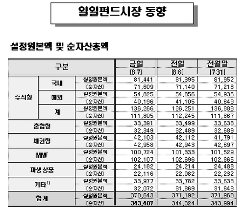 한편 채권형펀드는 전일보다 610억원 늘어난 42조1030억원을 기록했으며 혼합형펀드는 1090억원 감소한 33조3910억원으로 집계됐다.