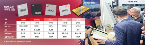 지난해까지는 HBM3E 8단이 주류였다면, 올해는 HBM3E 12단이 대세로 자리잡고 있다. HBM의 가장 큰 수요처는 엔비디아다. AI 그래픽처리장치(GPU) 시장을 장악한 엔비디아에 HBM을 공급하는 것은 HBM 제조사에게 사실상 최대 실적을 보장하는 셈이다.