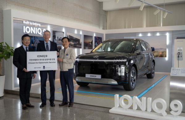 현대자동차는 전동화 플래그십 스포츠유틸리티차량(SUV) ‘아이오닉9’이 주한네덜란드대사관의 공식 관용차로 선정됐다고 28일 밝혔다. 현대차는 전일 아산공장에서 페이터 반 더 플리트 주한네덜란드대사, 김일범 현대차 글로벌정책실(GPO) 부사장, 박세국 현대차 아산공장장 전무 등 관계자가 참석한 가운데 아이오닉9 공식 관용차 전달식을 진행했다.
