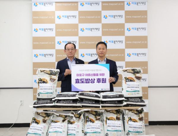 기증된 쌀은 마포구 내 40개 급식소에서 1600여 명의 노인에게 무료 점심을 제공하는 ‘효도밥상’ 급식사업에 활용된다.