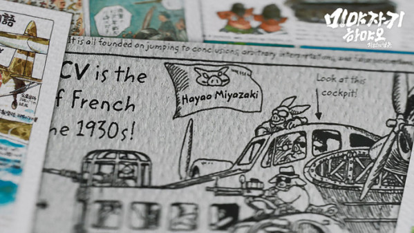한편으로 이 영화는 미야자키가 비행기에 유독 집착하게 된 배경을 그의 유년 시절과 연관 지어 설명한다. 1941년생인 미야자키는 제2차 세계대전 당시 도입됐던 미쓰비시 제로기의 부품 공장을 운영하는 아버지에게 큰 영향을 받았다. 그는 전투기의 잔혹하고 끔찍한 폭력성에 두려움을 느끼면서도 그것의 아름다움과 정교함에 매료된다. 미야자키로 상징되는 스튜디오 지브리 역시 1930년대 군용기 ‘카프로니 309 지브리’에서 따온 것이니, 그가 비행기를 얼마나 사랑하는지 알 수 있다.