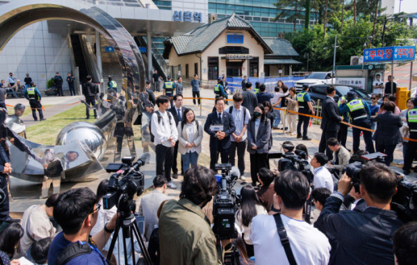 ▲이재명 더불어민주당 후보가 29일 서울 서대문구 신촌동 주민센터에서 제 21대 대통령선거 사전투표를 마치고 기자들의 질문에 답변하고 있다. 신태현 기자 holjjak@