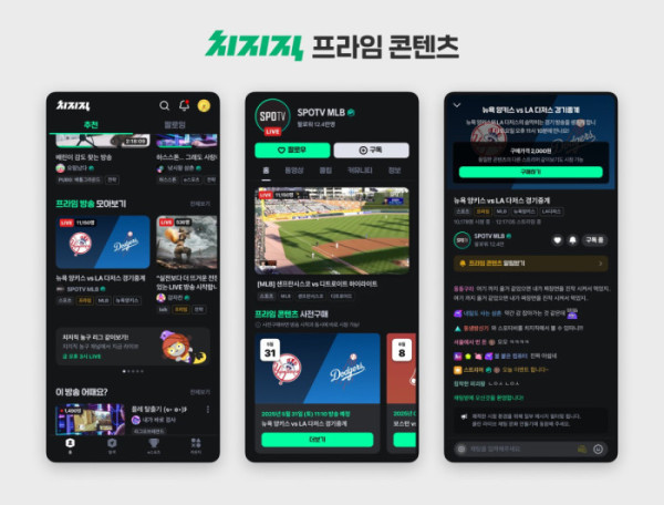 네이버 치지직은 첫 번째 프라임 콘텐츠로 스포츠 전문채널 SPOTV와 협력을 통해 미국 프로야구 메이저리그(MLB) 주요 경기를 제공한다. MLB 경우 세계적으로 높은 인기를 얻고 있고 최근 한국의 이정후 선수도 활약하는 등 높은 국내 수요가 기대되는 콘텐츠다. 사용자는 경기 주요 장면 관련 해설과 반응 등을 스트리머 혹은 다른 사용자들과 즉각 나누며 치지직만의 차별화된 스포츠 콘텐츠 시청 경험을 즐길 것으로 전망된다. 네이버 치지직은 MLB 콘텐츠 시범 제공을 시작으로 향후 현장감을 생생하게 전달할 수 있는 스포츠, 공연 등 더욱 다양한 프리미엄 콘텐츠 라인업을 확충할 계획이다.