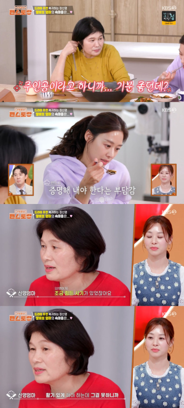 장신영은 “나란 사람을 믿고 ‘너 해봐’ 했는데 잘하지 못하면 다신 기회가 없을 것 같다. 증명해야 하는 부담감이 있다”라고 고백했다.