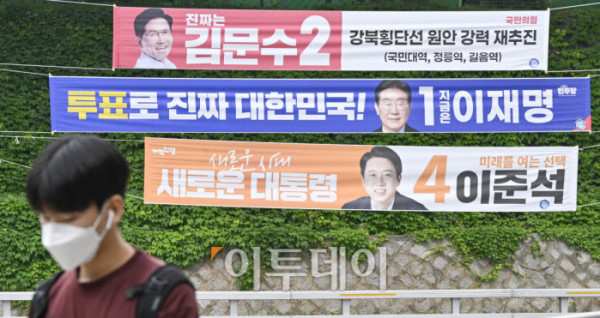 ▲제21대 대통령선거를 하루 앞둔 2일 서울 시내의 한 거리에 각 정당 대선 후보 현수막이 게시돼 있다. 제21대 대선 본투표는 3일 오전 6시부터 오후 8시까지 전국 투표소 1만4295곳에서 치뤄진다. 한편 이날 이재명 더불어민주당 대선 후보와 김문수 국민의힘 대선 후보 모두 서울에서 마지막으로 유권자를 만난다. 이재명 후보는 여의도공원에서, 김문수 후보는 서울시청 앞 광장에서 피날레 유세를 펼칠 예정이다. 이준석 개혁신당 대선 후보는 대구 수성구 수성못 일대에서 유세를 마무리 한다. 조현호 기자 hyunho@