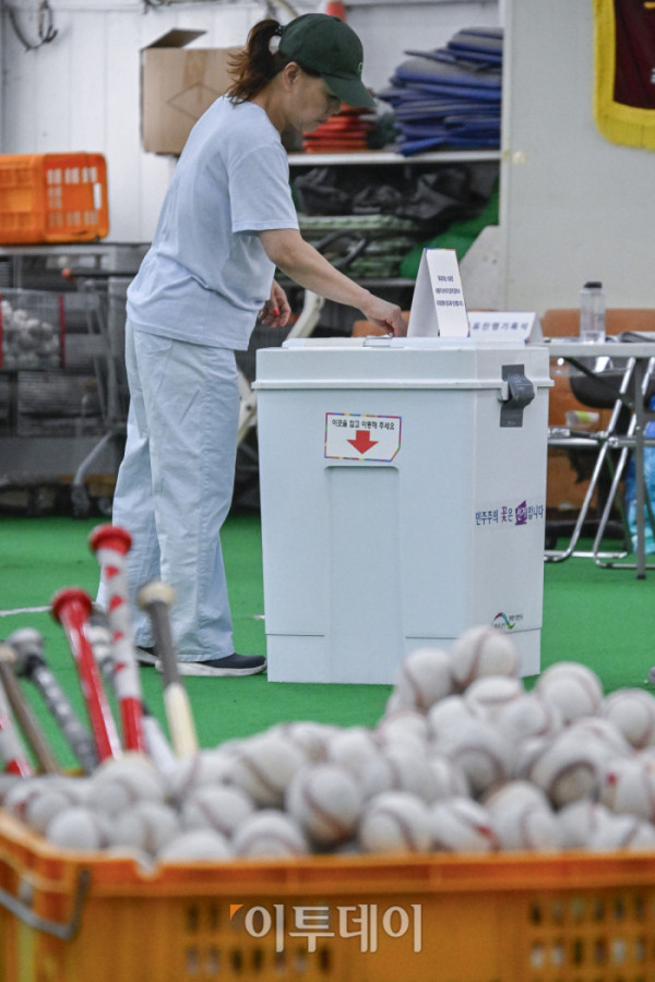 ▲제21대 대통령선거 본투표일인 3일 서울 중구 청구초등학교 야구부실내훈련장에 마련된 청구동제1투표소에서 시민들이 투표를 하고 있다. 이날 대선 본투표는 오전 6시부터 오후 8시까지 전국 1만4295개 투표소에서 진행된다. 조현호 기자 hyunho@