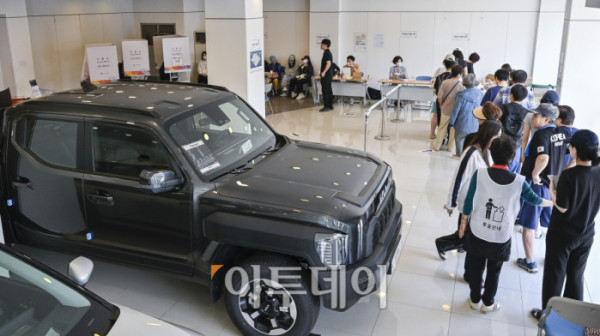 ▲제21대 대통령선거 본투표일인 3일 서울 광진구 기아자동차 대공원대리점에 마련된 능동제3표소에서 시민들이 투표를 하기 위해 줄을 서서 대기하고 있다. 이날 대선 본투표는 오전 6시부터 오후 8시까지 전국 1만4295개 투표소에서 진행된다. 조현호 기자 hyunho@