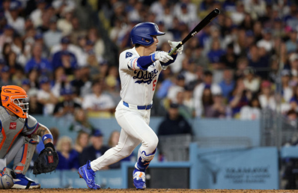 ▲3일(한국시간) 미국 캘리포니아주 로스앤젤레스에 있는 다저스타디움에서 열린 2025시즌 메이저리그(MLB) 로스앤젤레스 다저스와 뉴욕 메츠의 경기에서 김혜성이 안타를 치고 있다. (Imagn Images/연합뉴스)