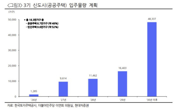 또한, 공공주택 확대는 중소형 건설사들의 수혜로 이어질 수 있으며, 동시에 재건축 규제 완화 정책으로 대형 건설사들의 수혜까지 가능하다는 점에서 건설업종 전반적으로 긍정적 재료가 될 것으로 봤다.