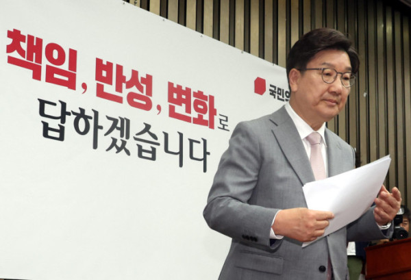 권 원내대표는 이날 국회에서 열린 의원총회에서 “보수의 재건을 위해 백지에서 새롭게 논의해야 한다”며 “저부터 원내대표직을 내려놓겠다”고 말했다.
