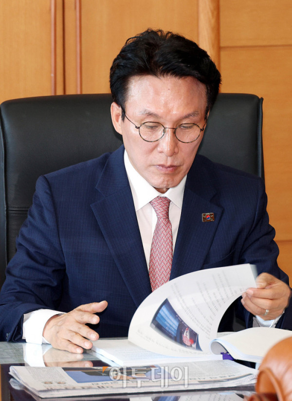 ▲김민석 국무총리 후보자가 5일 서울 종로구 금융감독원 연수원에 마련된 인사청문회 준비 사무실에서 신문 자료를 살펴보고 있다. 조현호 기자 hyunho@