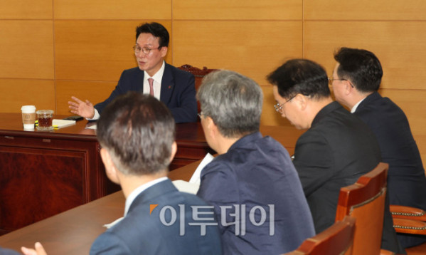 ▲김민석 국무총리 후보자가 5일 서울 종로구 금융감독원 연수원에 마련된 인사청문회 준비 사무실에서 열린 간부회의에서 인사말을 하고 있다. 조현호 기자 hyunho@
