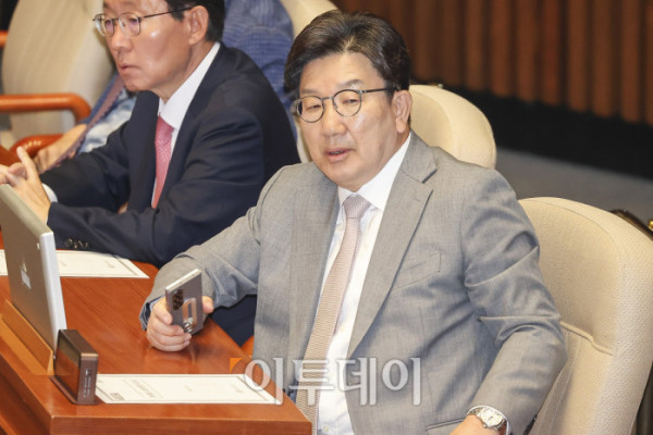 ▲권성동 국민의힘 전 원내대표가 5일 서울 여의도 국회에서 열린 본회의에 참석해 있다. 조현호 기자 hyunho@