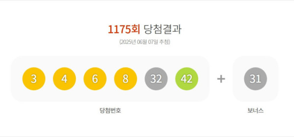 7일 로또복권 운영사 동행복권에 따르면 제1175회 1등 번호는 ‘3, 4, 6, 8, 32, 42’로 확정됐다.
