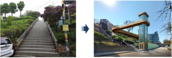 숭인동(창신역 일대)은 길이 115m, 경사도 30도 이상인 급경사 계단이 있는데 경사형 엘리베이터를 설치해 창신역과 고지대 주거지 간 보행 편의성을 높이는 한편 학생들의 통학 안전성도 확보한다. 신당동(청구동 마을마당 앞)은 길이 113m, 33도 이상의 급경사 계단으로 단절된 무장애 남산자락숲길을 연결해 주는 엘리베이터를 설치할 계획이다. 이를 통해 도심 주거지에서 도보로 15분 만에 갈 수 있는 남산 숲세권이 완성될 전망이다.