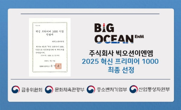 미래 성장 주도할 핵심 중소·중견 기업을 대상으로 한 ‘혁신 프리미어 1000’, 빅오션이엔엠 최종 선정