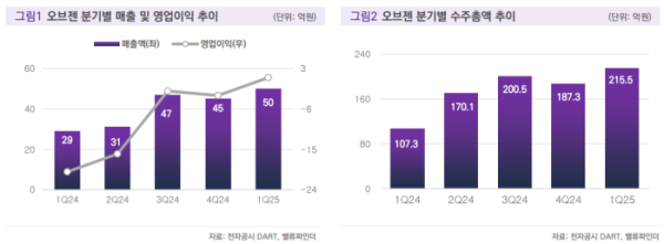 이충헌 밸류파인더 연구원은 "오브젠은 매출액이 크게 증가함에 따라 적자 폭이 감소하며 올해 1분기에 역대 최대 분기 매출과 함께 흑자전환에 성공했다"라며 "실적은 삼성금융네트웍스 모니모원 앱(44억 원), KB증권 더플랫폼(28억 원), IBK기업은행 신고객정보활용 플랫폼 구축(53억 원) 계약 등 대형 사업들의 잇따른 수주 행진에 기인한다"라고 설명했다.