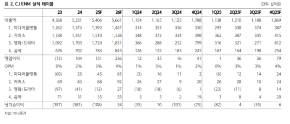 하나증권은 11일 CJ ENM에 대해 티빙과 웨이브의 합병 가시화와 한한령 완화 기대감 확산에 따른 실적 회복이 예상된다고 평가했다. 목표주가를 기존 7만7000원에서 9만5000원으로 상향하고 투자의견 ‘매수’를 유지했다.