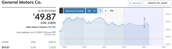 미국 자동차 제조업체 GM 주가는 1.92% 상승 마감했다. 미국에서 더 많은 차량을 생산하기 위해 40억 달러를 지출한다고 발표한 것이 주가를 끌어올렸다. 블룸버그통신에 따르면 지난해 GM은 미국 내 판매한 자동차의 약 45%를 주로 멕시코, 캐나다, 한국에서 수입했다.
