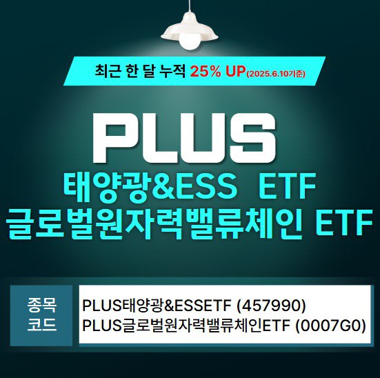 금융정보업체 에프앤가이드에 따르면 PLUS 태양광&ESS와 PLUS 글로벌원자력밸류체인 ETF의 최근 한 달 수익률은 6월 10일 종가 기준 각각 25.08%, 26.85%를 기록했다. 두 ETF는 글로벌 에너지 패권 경쟁에 직간접적인 수혜를 입을 것으로 기대된다는 점에서 주목받고 있다.