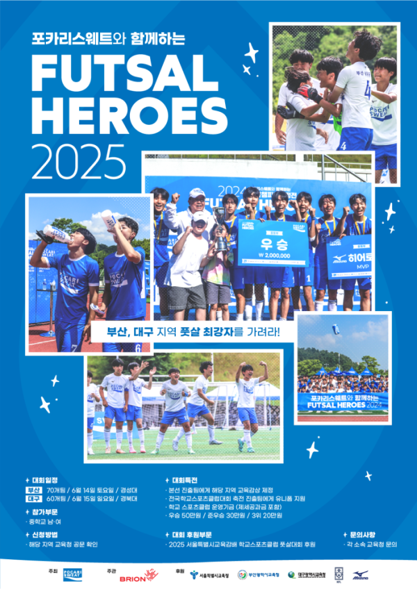 동아오츠카는 청소년의 건강한 성장과 학교체육 활성화를 위해 중학교 풋살 대항전 ‘포카리스웨트와 함께하는 FUTSAL HEROES 2025’를 개최한다고 12일 밝혔다.