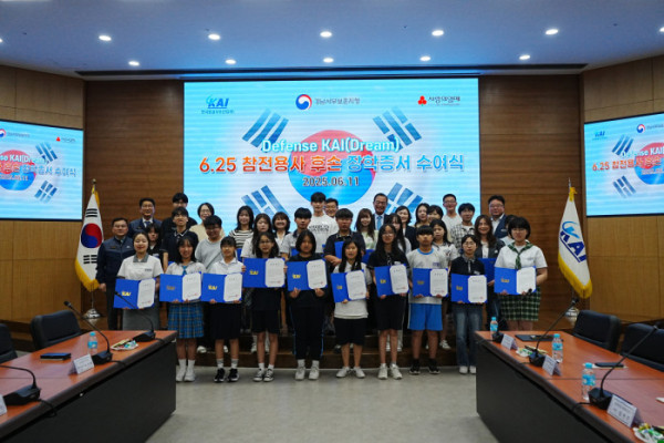 한국항공우주산업(KAI)는 6.25 전쟁 참전용사 후손을 대상으로 장학증서 수여식을 진행했다고 12일 밝혔다.