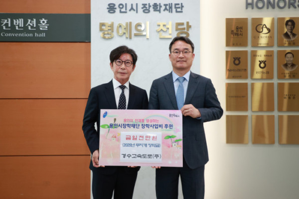 구자범 용인시 장학재단 이사장은 "꾸준한 장학기부는 결코 쉬운 일이 아니다. 경수고속도로는 지속 가능한 나눔을 실천하는 모범 기업"이라며 깊은 감사의 뜻을 전했다. 그는 또한 "이러한 민간의 기부가 용인의 교육과 문화 기반을 더욱 단단하게 만든다"고 강조했다.