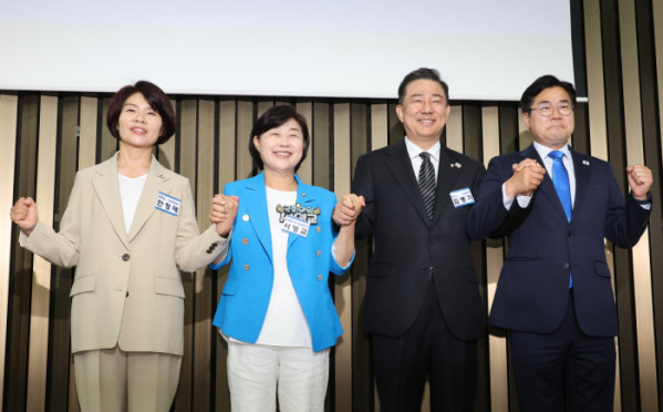 김 의원은 "검찰·사법·언론 등 산적한 개혁 과제를 신속히 처리하겠다"고 했고, 서 의원은 "원내대표 후보가 되자마자 전국민 민생회복지원금을 요청해 확실한 일성을 날렸다"고 강조했다.