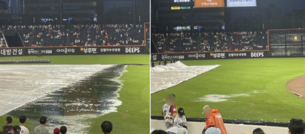 그러나 최신식 신구장의 배수 시스템은 야속할 만큼 강력했다. 약 한시간만에 28㎜ 비가 내렸지만 불과 30여 분 만에 물웅덩이는 자취를 감췄고, 경기는 예정보다 빠른 8시 27분에 재개됐다. SNS에는 비에 젖은 그라운드와 말끔히 복구된 모습이 ‘비포 앤 애프터’ 사진으로 퍼지면서 한화 팬들에게는 아쉬움이 LG 팬들에게는 기대감이 동시에 떠올랐다.
