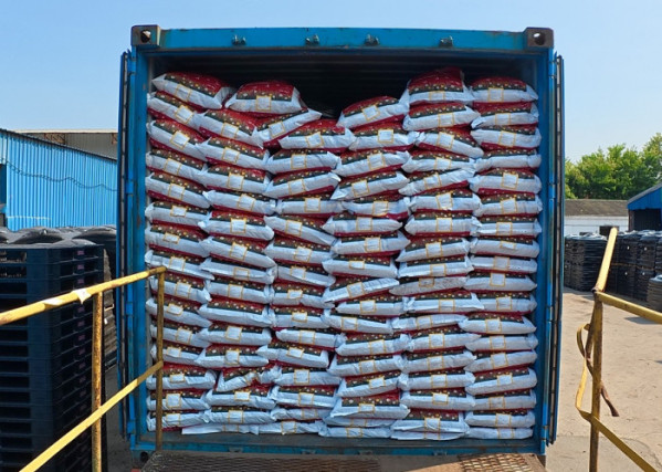 ▲STX가 베트남으로 수출하는 국산 유기질비료가 컨테이너에 선적된 모습 (사진제공=STX)