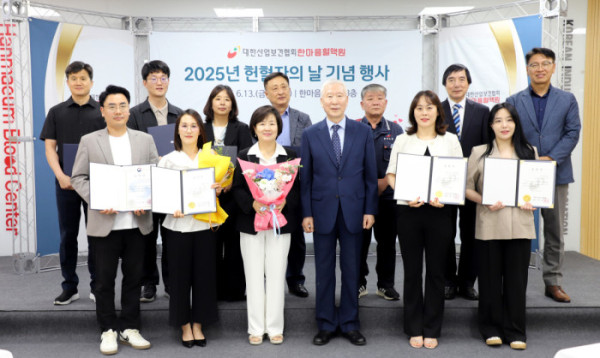 대한산업보건협회 한마음혈액원은 13일 ‘헌혈자의 날’을 기념해 혈액원 경기 군포 사옥에서 기념식을 열고 헌혈 문화 확산과 국가 혈액사업 발전에 기여한 헌혈 유공자 및 유공 단체에 표창을 수여했다고 16일 밝혔다.