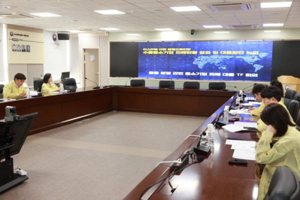 ▲중소벤처기업부와 중소기업 주요 지원기관 관계자들이 모여 중동 분쟁 관련 중소기업 피해 대응 TF 회의를 하고 있다. (사진제공=중소벤처기업부)