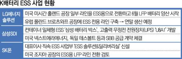 16일 업계에 따르면 LG에너지솔루션, 삼성SDI, SK온 등 국내 배터리 3사는 올해부터 ESS 사업에 본격적으로 힘을 싣고 있다. ‘맏형’ LG에너지솔루션은 발빠르게 포트폴리오 다변화에 나섰다. 2022년 설립한 자회사 버테크를 통해 북미 ESS 사업을 본격화했고, 지난해에만 세 차례 조(兆) 단위 수주를 따냈다. 최근에는 미국 미시간주 홀랜드 공장의 일부 전기차 배터리 라인을 ESS용으로 전환하고 이달 초부터 ESS용 리튬인산철(LFP) 배터리 양산에 들어갔다.