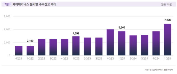 이충헌 밸류파인더 연구원은 "세아메카닉스의 2차전지, ESS, 팝업 디스플레이, 내연기관, 전기차 부품 등을 포함(전자부품 제외)한 1분기 수주잔액은 7276억 원으로, 전반적으로 업황이 안 좋은 상황에 서도 역대 최대치를 기록하고 있다"라며 "동사 신제품인 ESS 및 팝업 디스플레이용 부품이 높은 비중을 차지하고 있는 것으로 파악된다"라고 전했다.