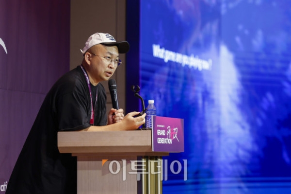 ▲조용민 언바운드랩데브 대표가 17일 서울 중구 앰배서더 서울 풀만 호텔에서 열린 ‘2025 그랜드 제너레이션 콘퍼런스(GGC)’에서 특별강연을 하고 있다. 올해로 3회째를 맞이한 GGC 2025는 ‘새로운 성장을 이끄는 힘 그랜드 제너레이션 파워’를 주제로 각 분야의 전문가들이 모여 초고령화 사회로의 전환에 대한 대응법을 모색하는 자리다. 조현호 기자 hyunho@