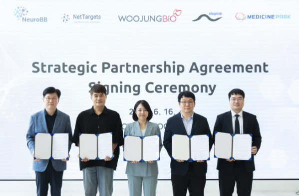 이번 프로젝트 참여기업은 △뉴로비비(뇌질환 신약개발 및 CNS 화합물 초기 AI 스크리닝) △넷타겟(In silico 모델링) △엘렉스랩(In vivo ADME/효능평가 대체시험 플랫폼) △메디슨파크(저분자량 바이오폴리머 소재의 골관절염 치료제 개발) 등이다. 우정바이오는 이들 기업과의 긴밀한 협조를 통해 신속한 PoC(Proof of Concept, 개념입증)를 진행하고, 사업화 가능성을 빠르게 검토해 나갈 계획이다.