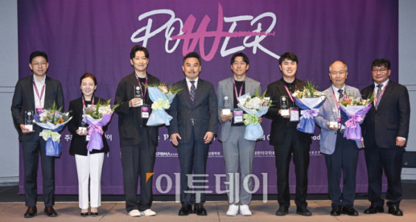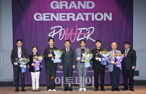 ▲17일 서울 중구 앰배서더 서울 풀만 호텔에서 열린 ‘2025 그랜드 제너레이션 콘퍼런스(GGC)’ 한국 그랜드 제너레이션 브랜드 대상(KGBA) 시상식에서 서용구 한국 그랜드 제너레이션 브랜드위원회 위원장과 수상자들이 기념촬영을 하고 있다. 왼쪽부터 유승구 메디버 대표, 김정은 365mc병원 올뉴강남점 대표원장, 박상우 시몬스 상무, 서 위원장, 민학래 퍼슨헬스케어 본부장, 박재병 케어닥 대표, 이병구 레이델코리아 대표, 신동민 이투데이피앤씨 대표. 조현호 기자 hyunho@