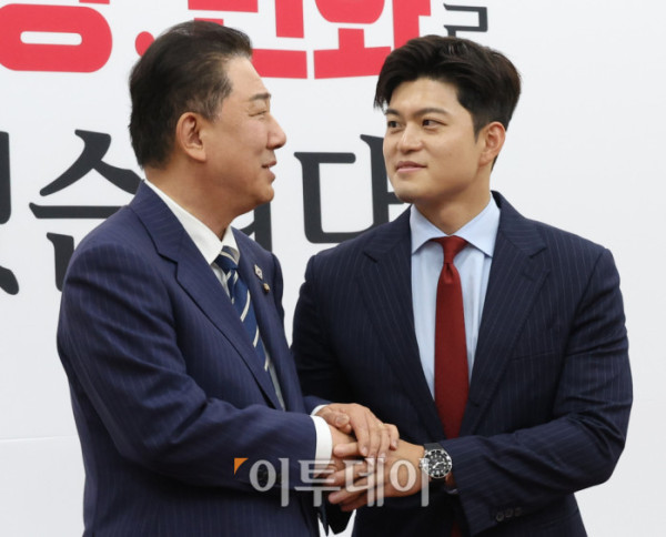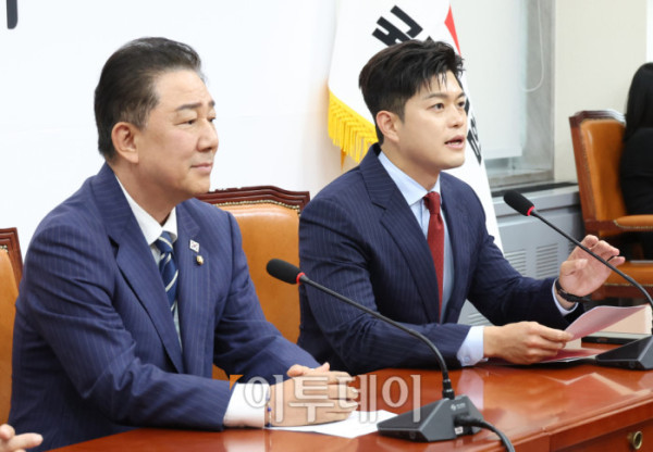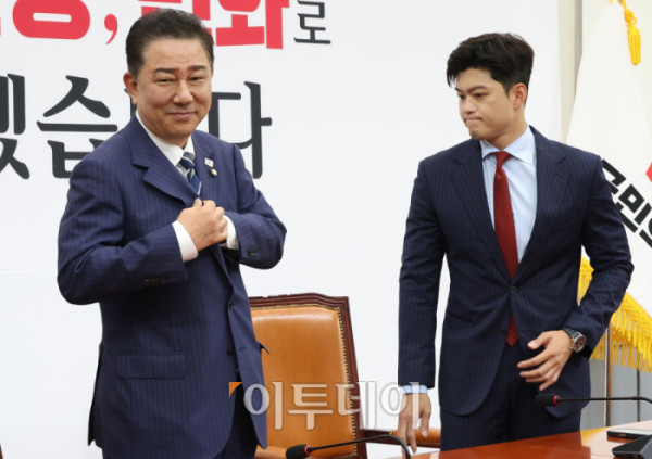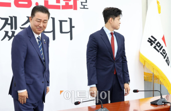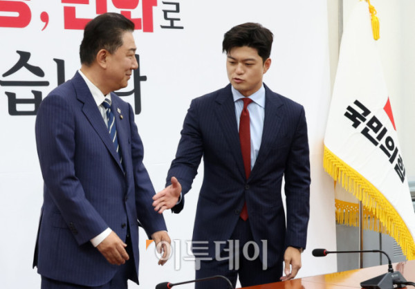 ▲김병기(왼쪽) 더불어민주당 대표 직무대행 겸 원내대표가 17일 서울 여의도 국회에서 김용태 국민의힘 비상대책위원장을 예방하고 있다. 고이란 기자 photoeran@