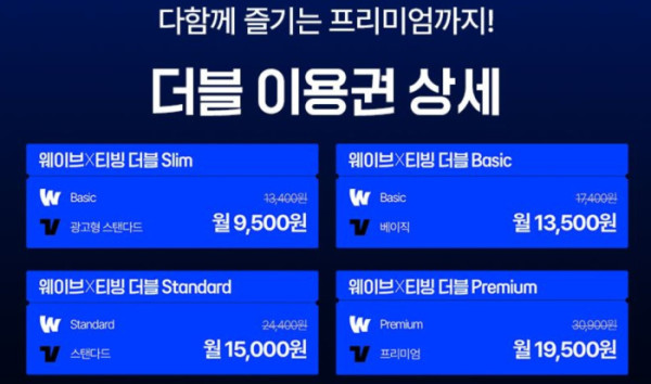 ‘더블 프리미엄 요금제’는 티빙과 웨이브 각각의 프리미엄 요금제를 결합한 형태로, 이론상 최대 8명(4명+4명)이 동시에 시청할 수 있고, 두 플랫폼 모두 4K 화질을 지원합니다. 수치만 보면 넷플릭스 프리미엄(1만7000원, 4인 4K)보다 공유 인원이 2배 많고 콘텐츠 폭도 넓은데다 실질적으로 전혀 다른 사용자 경험을 제공하는 셈이죠.
