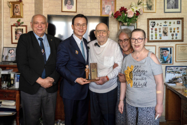 LIG넥스원은 파리에어쇼 참가로 프랑스를 방문 중인 신익현 대표가 한국전쟁 참전용사인 세르주 아르샹보(95세)씨를 찾아 감사패와 기념품을 전달했다고 18일 밝혔다.