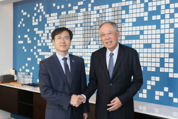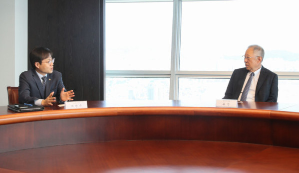 ▲류진 한국경제인협회 회장이 18일 서울 여의도 한국경제인협회를 방문한 여한구 신임 통상교섭본부장을 만나 한미 통상 및 주요 현안에 대해 논의했다. (사진제공=한국경제인협회)