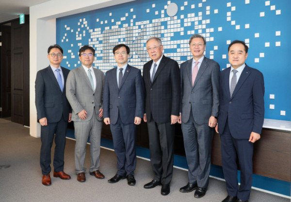 ▲류진 한국경제인협회 회장이 18일 서울 여의도 한국경제인협회를 방문한 여한구 신임 통상교섭본부장을 비롯한 참석자들과 기념촬영을 하고 있다. 왼쪽부터 김봉만 한경협 국제본부장, 박정성 산업부 무역투자실장, 여한구 통상교섭본부장, 류진 한경협 회장, 김창범 한경협 부회장, 정철 한경연 원장. (사진제공=한국경제인협회)