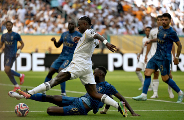전반 34분 레알은 매끄러운 역습으로 먼저 골을 뽑아냈다. 호드리구의 패스를 받은 곤살로 가르시아가 침착하게 오른발로 마무리하며 알론소 체제의 첫 골을 신고했다. 하지만 기쁨은 오래가지 않았다. 7분 뒤 수비수 라울 아센시오가 마르쿠스 레오나르두를 박스 안에서 넘겨 페널티킥을 내줬고, 네베스가 이를 성공시키며 알힐랄이 균형을 맞췄다.