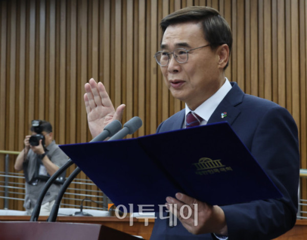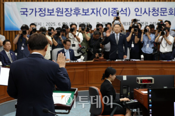 ▲이종석 국가정보원장 후보자가 19일 서울 여의도 국회 정보위원회에서 열린 인사청문회에서 선서하고 있다. 고이란 기자 photoeran@