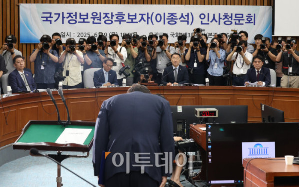 ▲이종석 국가정보원장 후보자가 19일 서울 여의도 국회 정보위원회에서 열린 인사청문회에서 인사하고 있다. 고이란 기자 photoeran@