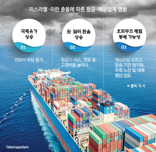 이스라엘과 이란의 군사적 충돌로 중동 정세가 요동치는 가운데 하늘길과 바닷길 운항에 비상등이 켜졌다. 특히 항공·해운업계는 국제유가나 원·달러 환율 급등으로 비용 부담이 커지면서 수익성 악화를 불러올 수 있어 긴장감이 높아진 상황이다. 주요 원유 수송로인 호르무즈 해협을 봉쇄할 가능성도 나오면서 물류 대란이 벌어질 수 있다는 우려도 나온다.