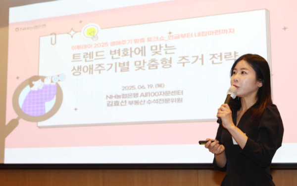 ▲19일 서울 여의도 FKI타워 컨퍼런스센터에서 열린 ‘2025 생애주기 맞춤 콘서트’에서 김효선 NH농협은행 부동산수석전문위원이 ‘트렌드 변화에 맞는 생애주기별 맞춤형 주거 전략’을 주제로 발표하고 있다. 이투데이가 주최하는 ‘생애주기 맞춤 콘서트’는 2030대의 첫 투자와 목돈 마련, 4050대의 내집마련과 은퇴 전략 등 각 연령대에 필요한 정보를 업계 전문가들과 함께 풀어가는 자리다. 신태현 기자 holjjak@