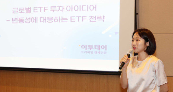 19일 서울 여의도 FKI타워 컨퍼런스센터에서 열린 ‘2025 생애주기 맞춤 콘서트’에서 임은혜 삼성증권 해외ETF 수석연구위원이 ‘글로벌 ETF 투자 아이디어-변동성에 대응하는 ETF 전략’을 주제로 발표하고 있다. 이투데이가 주최하는 ‘생애주기 맞춤 콘서트’는 2030대의 첫 투자와 목돈 마련, 4050대의 내집마련과 은퇴 전략 등 각 연령대에 필요한 정보를 업계 전문가들과 함께 풀어가는 자리다.