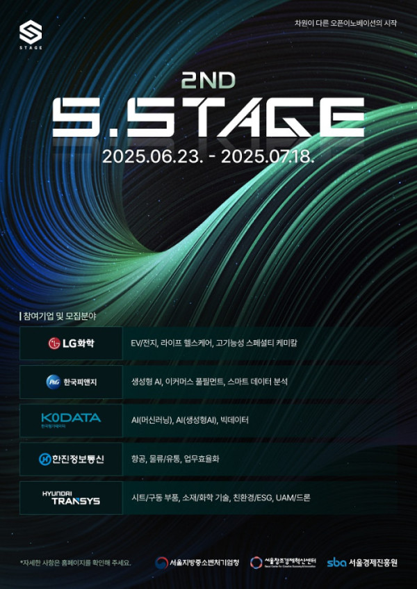 서울창조경제혁신센터(대표이사 이영근)는 LG화학, 한국P&G, 한국평가데이터, 한진정보통신, 현대트랜시스와 함께 오픈이노베이션 프로그램 ‘2025 2nd S.Stage’를 진행한다고 밝혔다.
